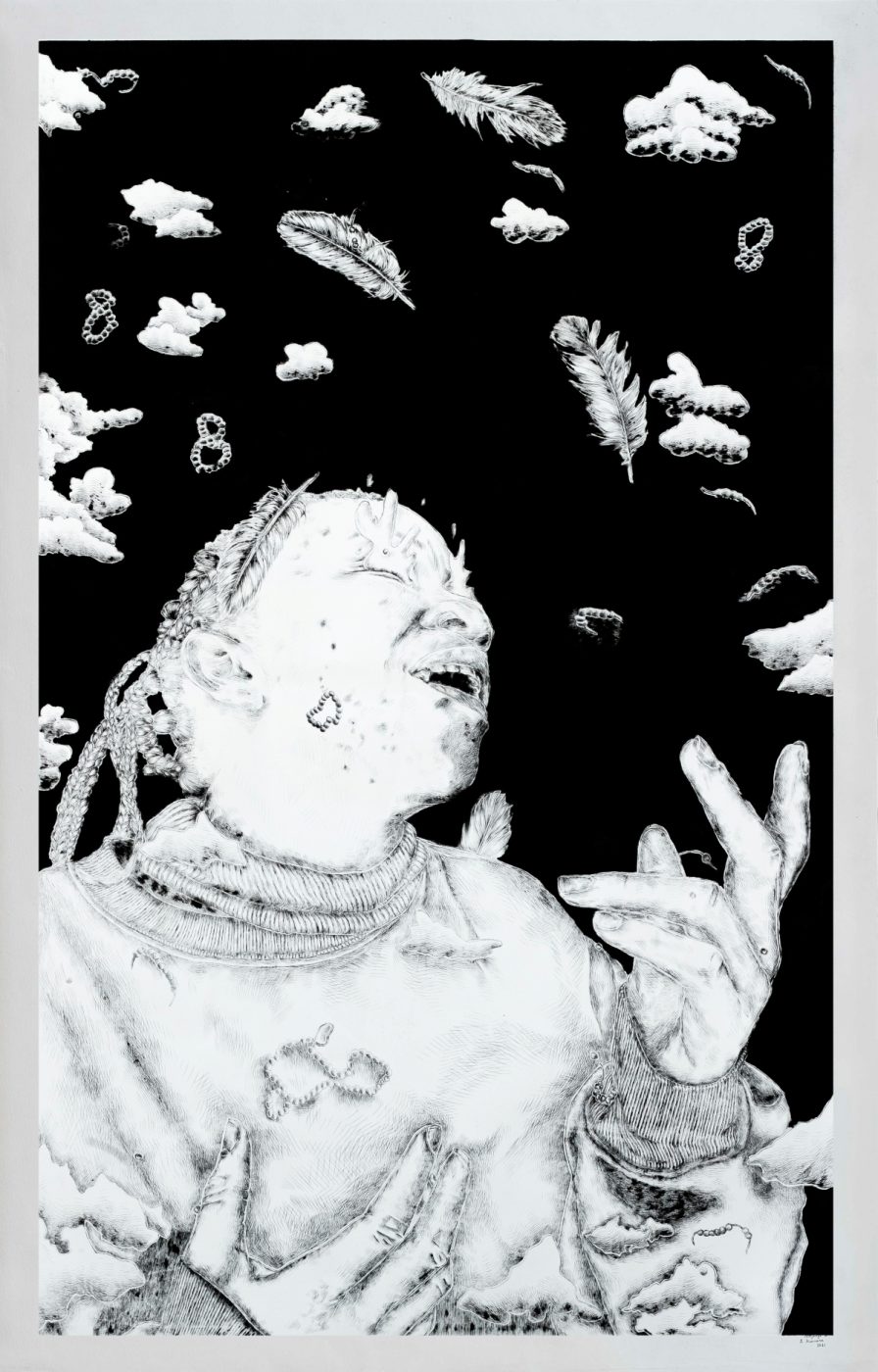 Image: Geolwe by Kwinana. Colour pencil on Fabriano, 2023. Courtesy of Berman Contemporary.